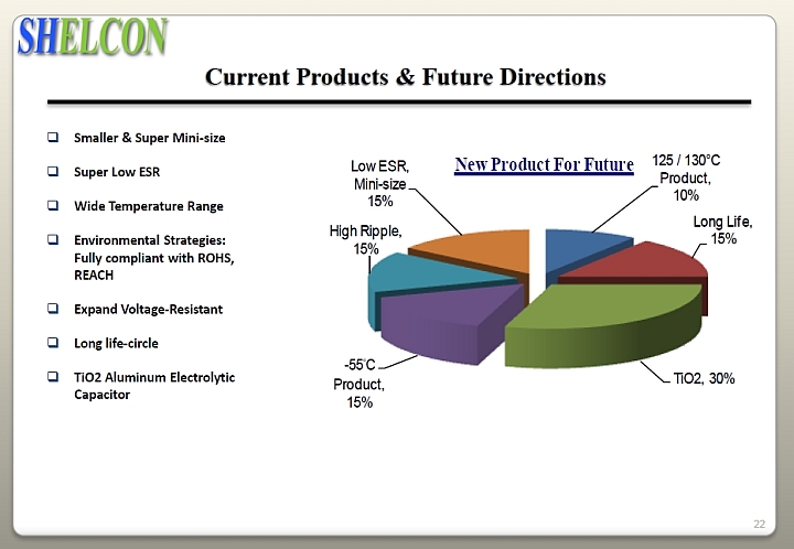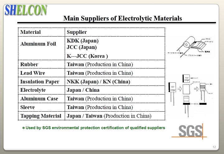 Shelcon group has been a joint venture enterprise of China, Hong Kong and Japan. The head office is situated at Hong Kong whereas the R&D department, manufacturing department and quality control department are located at the factory in Huang Jiang Town of Dongguan City in China. Our company has started manufacture and sale of Aluminum Electrolytic Capacitor under the trademark "SHELCON " since 2002. For over 10 years, we have been keep providing the best quality of our products. All the Aluminum Electrolytic Capacitors are being designed and manufactured in completely conformance with Japan Industrial Technology and norm full range of Aluminum Electrolytic Capacitor, from miniature type to large can-size SNAP-IN and SCREW types; as well as from 6.3V to 450V, can be provided. Our company is not only pursuing for continuous technology innovation but also state-of-the-art in manufacturing management and quality control. |
