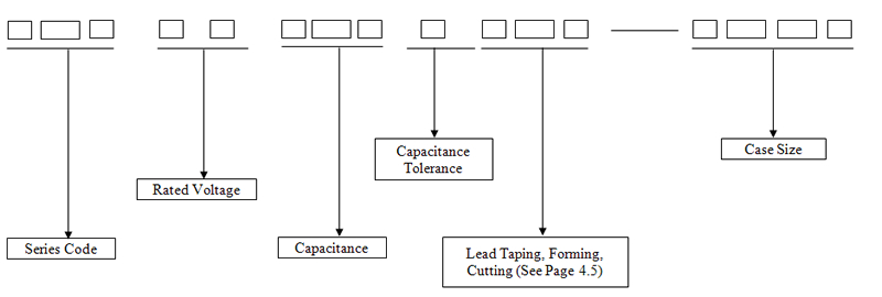 Example SH series 50V10μF Φ5x11L Taping Code (TB)